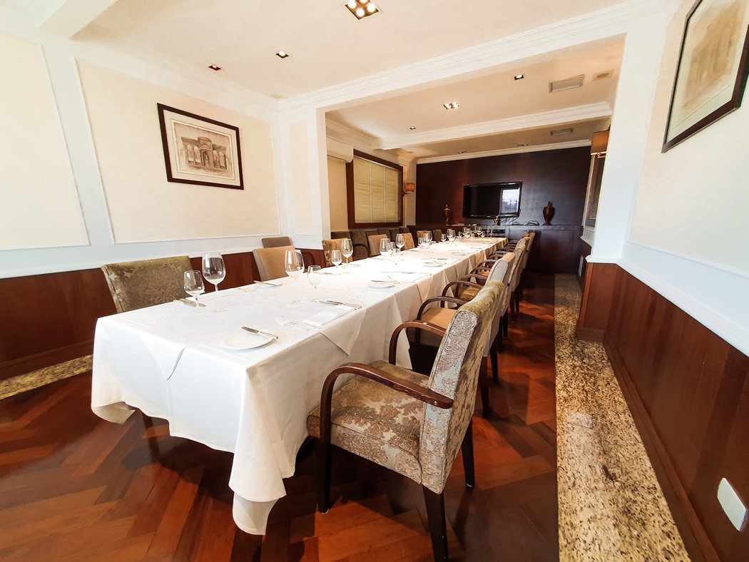 Salão exclusivo para eventos de pequenos grupos em reuniões ou almoços e jantares reservados com capacidades para 35 pessoas.