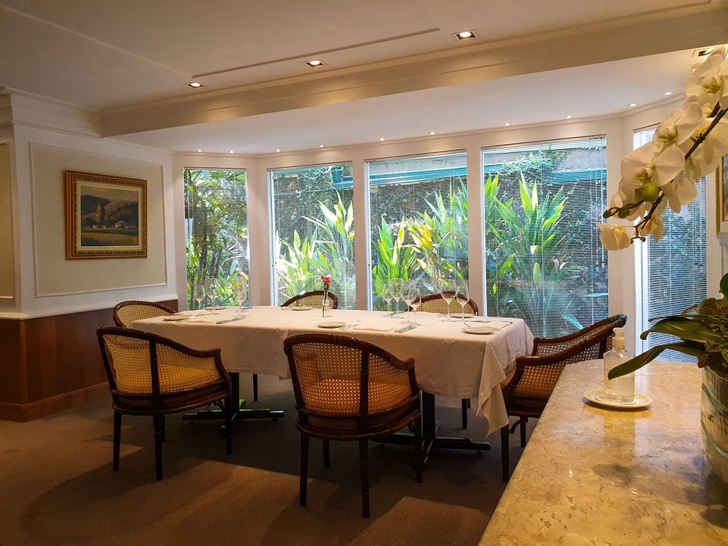 Espaço reservado no salão do restaurante para até 12 pessoas em almoço ou jantar.